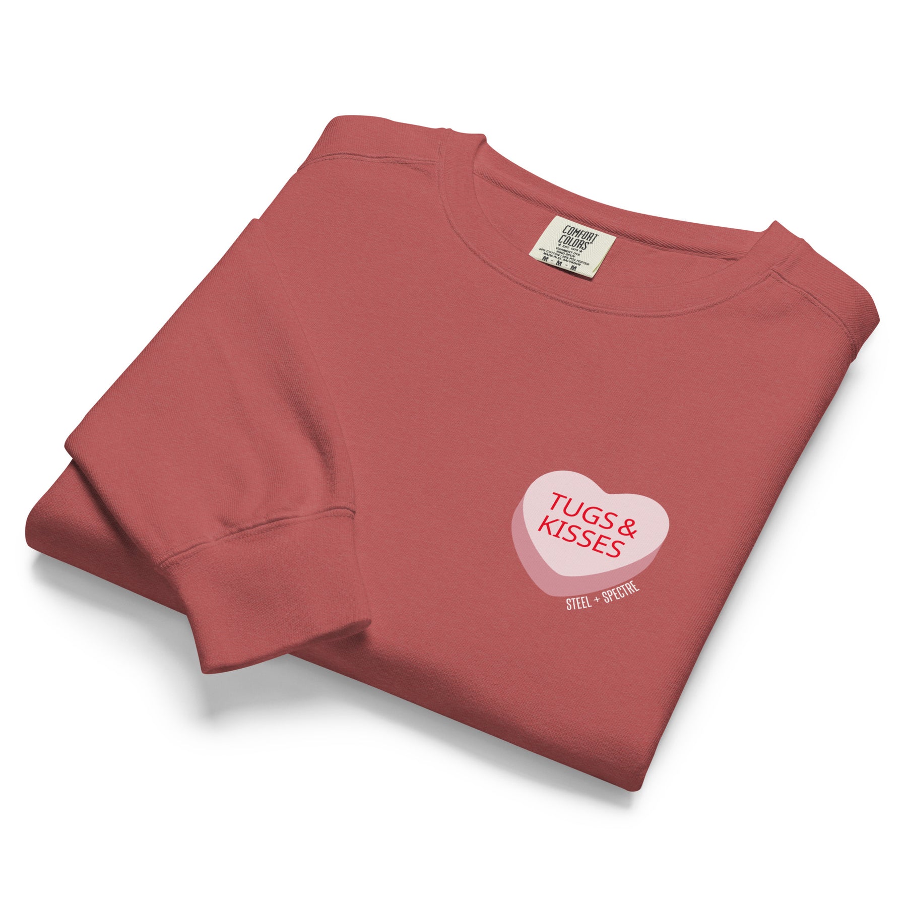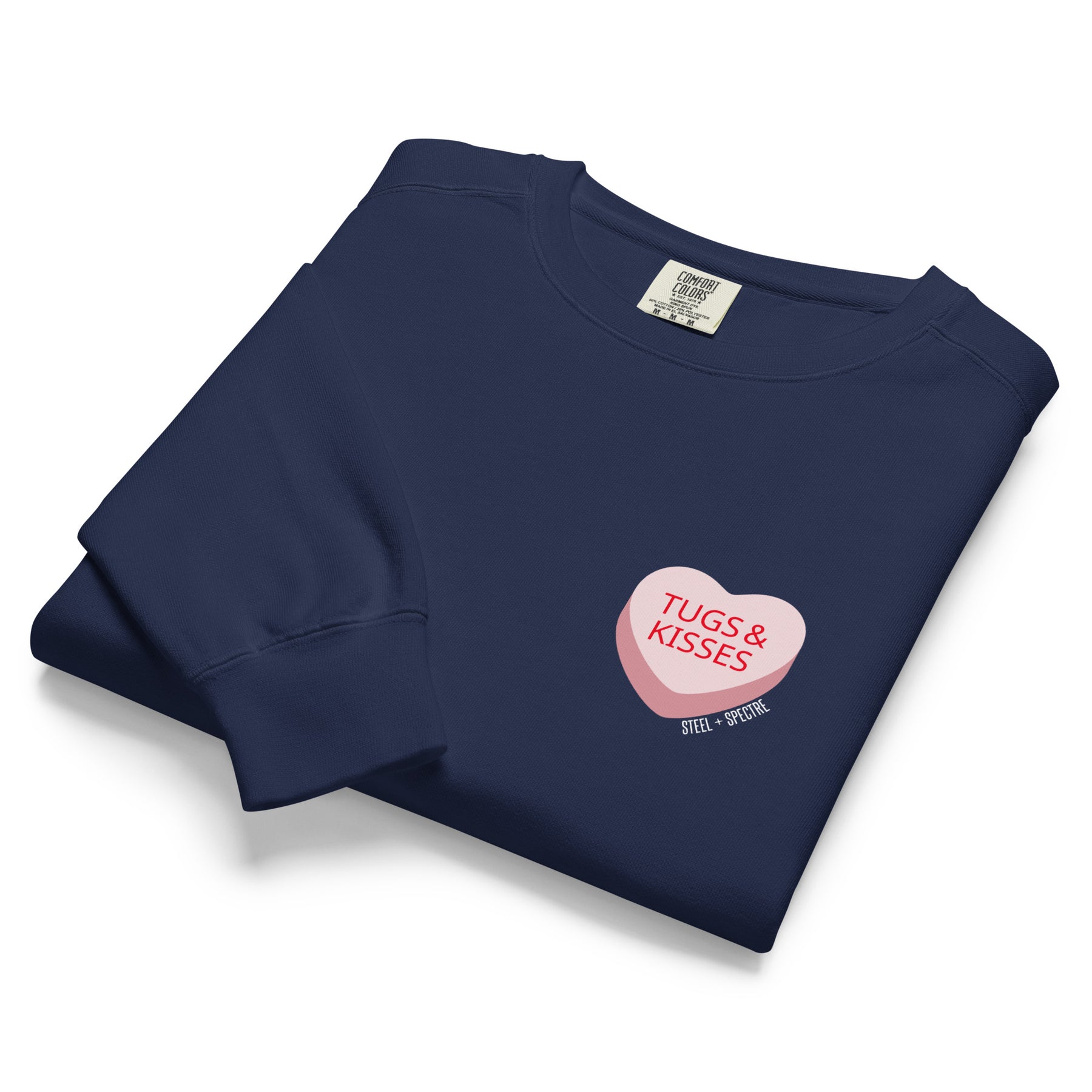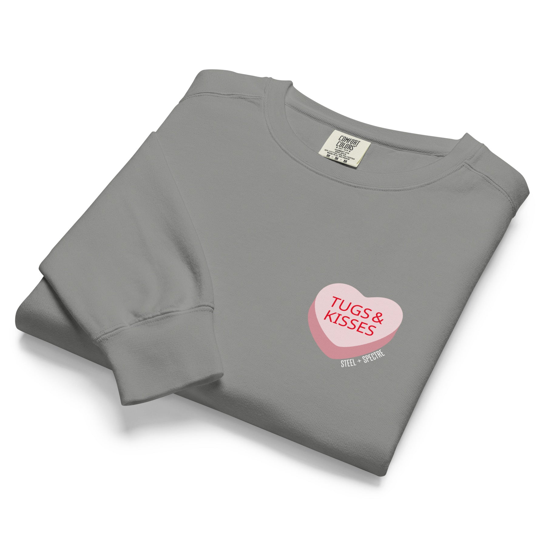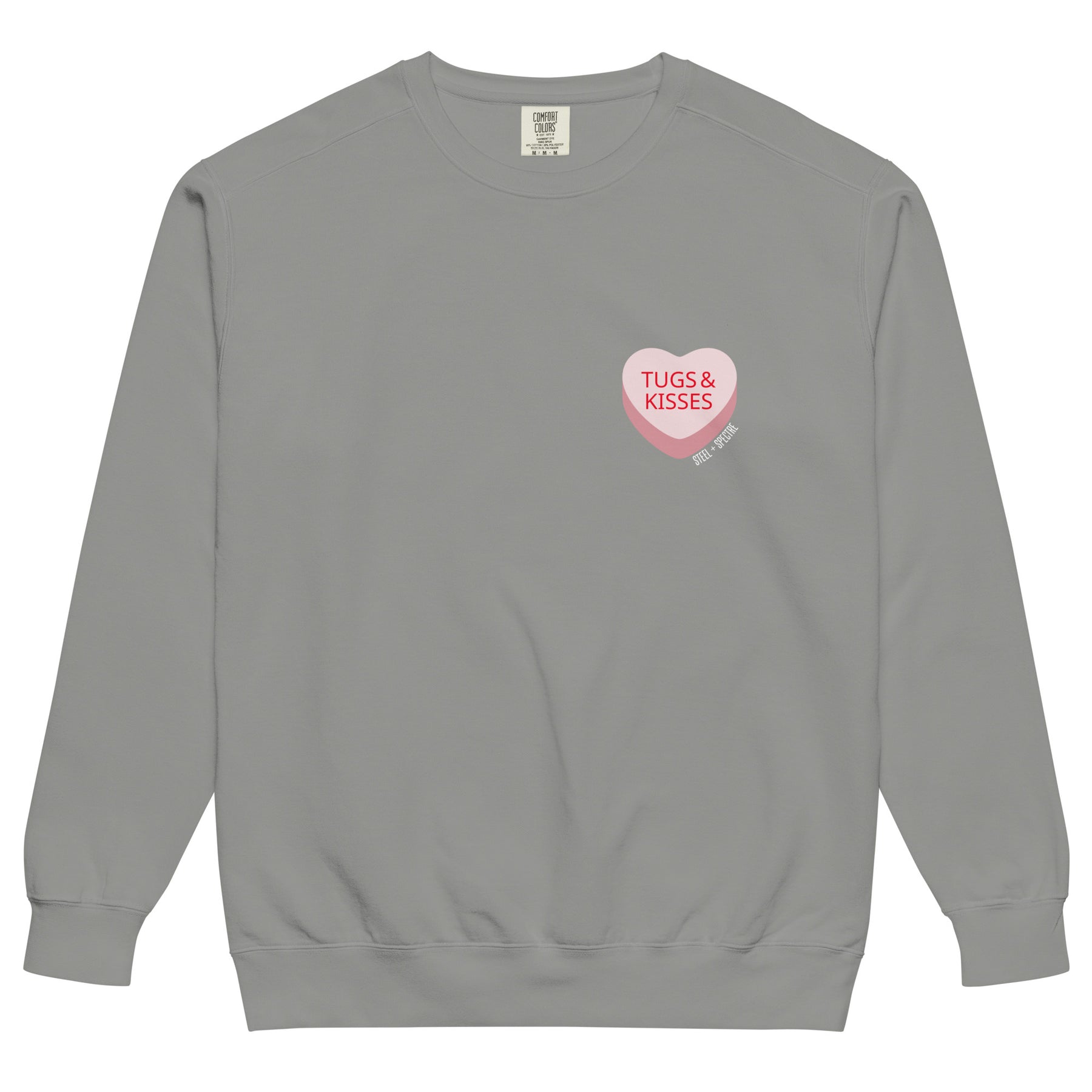 Styled in the likeness of the iconic Valentines Day candy, this design puts a spin on the sweet messages and updates them for the modern dog trainer, handler and enthusiast. With fun sayings like "Tugs & Kisses", "Treat Me" and "Love Bites", this sweatshirt makes a great gift for the dog lover in your life.