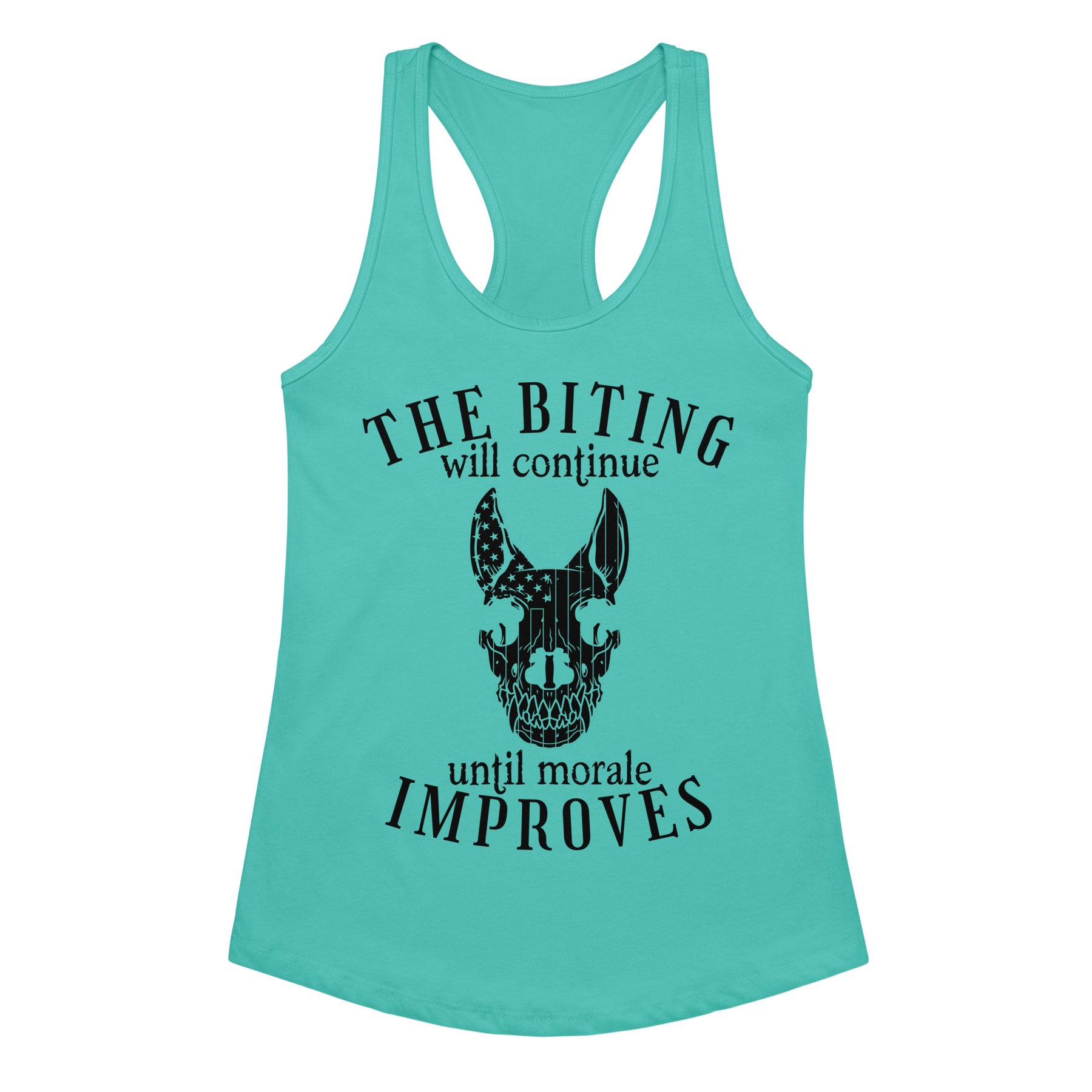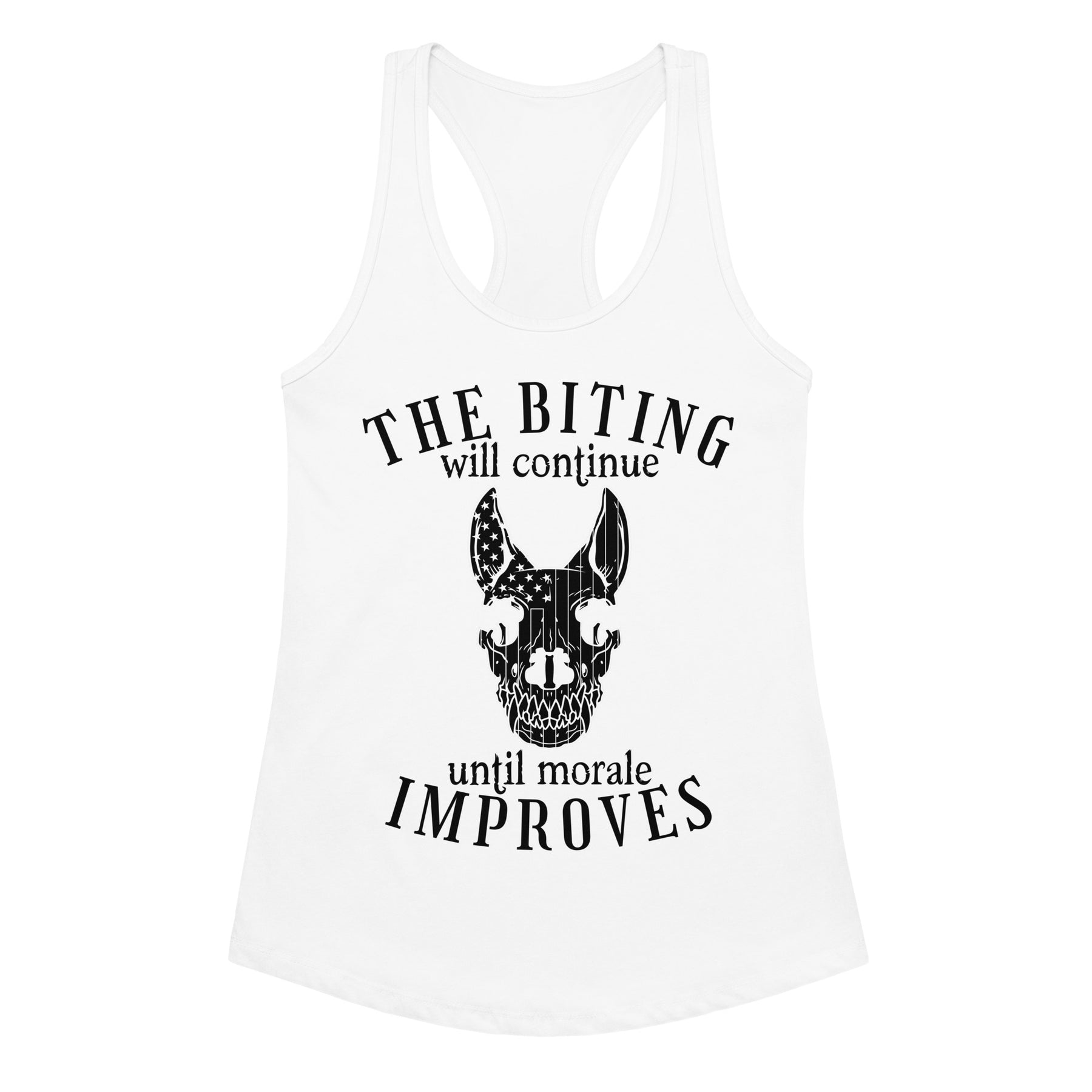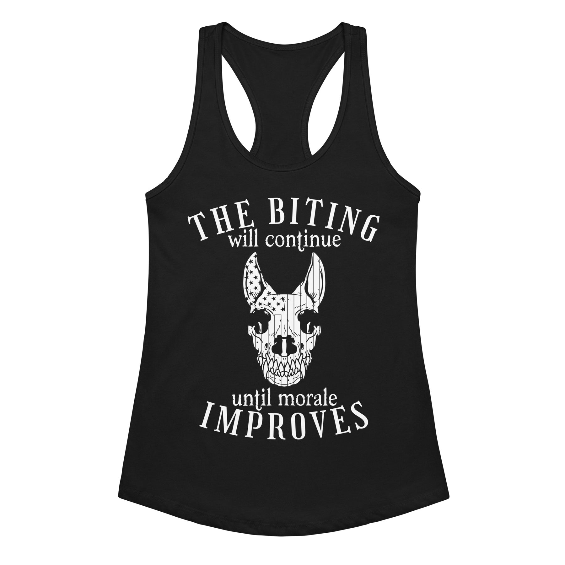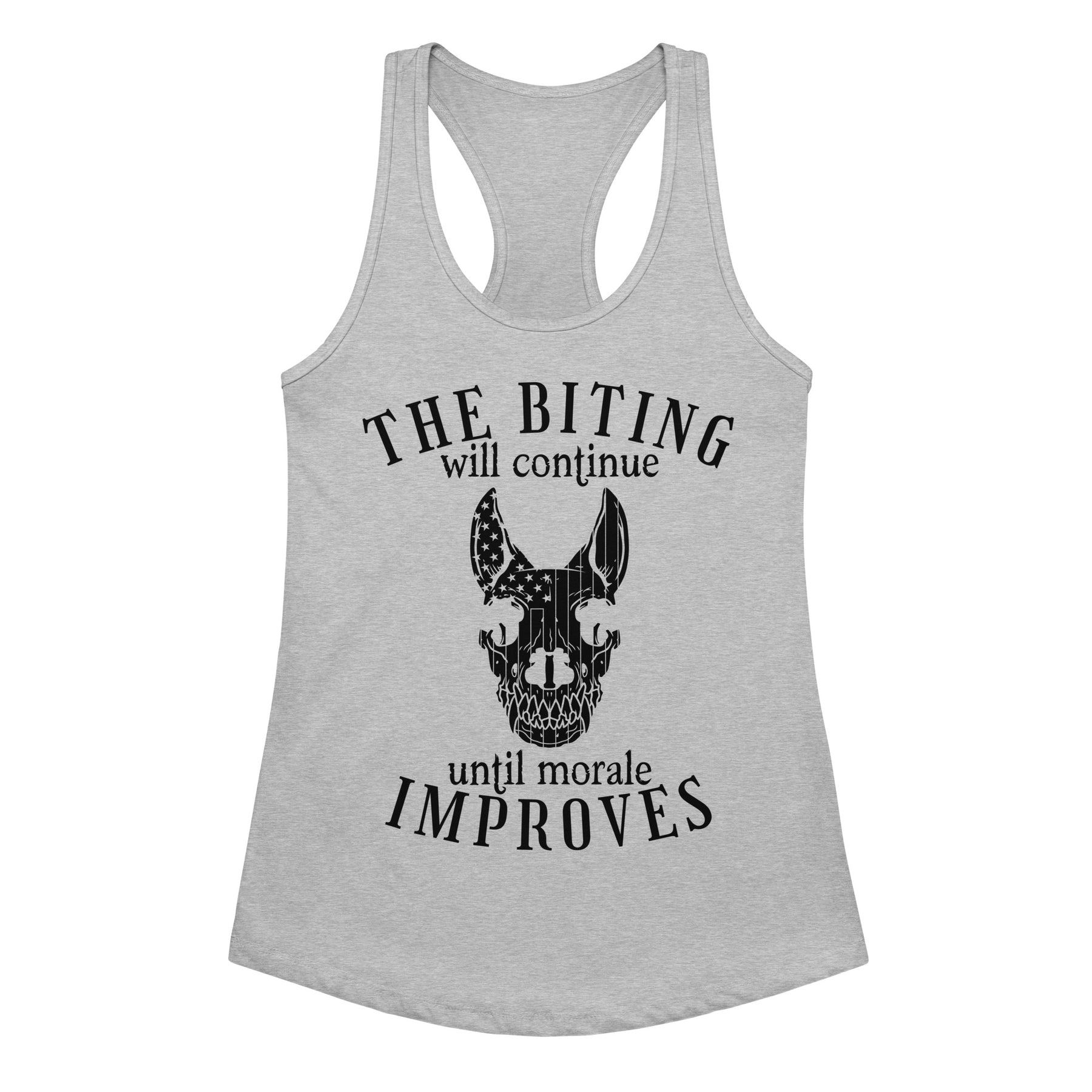 Management has reviewed the situation and determined that the dog is not the problem. You are simply not rewarding fast enough. The The Biting Will Continue Until Morale Improves Tank is for the handlers who get it — the ones who laugh through the frustration, celebrate the small wins, and show up to training even when their dog is being absolutely feral.